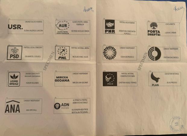 22 NoiAu apărut primele imagini cu buletinul de vot din primul tur, cu cei 14 candidați înscriși în cursa pentru cea mai înaltă funcție din stat.