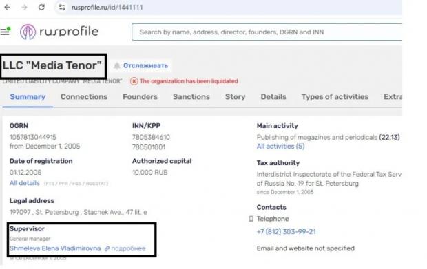 În prezent, Media Tenor din Sankt Petersburg figurează drept lichidată, dar, alături de firma lui Schatz, care deținea 52% din părțile sociale, în această societate apărea cu 10% rusoaica Elena Vladimirovna Șmelova care îndeplinea și funcția de CEO, aceeași implicată în campania lui Putin din 2018.