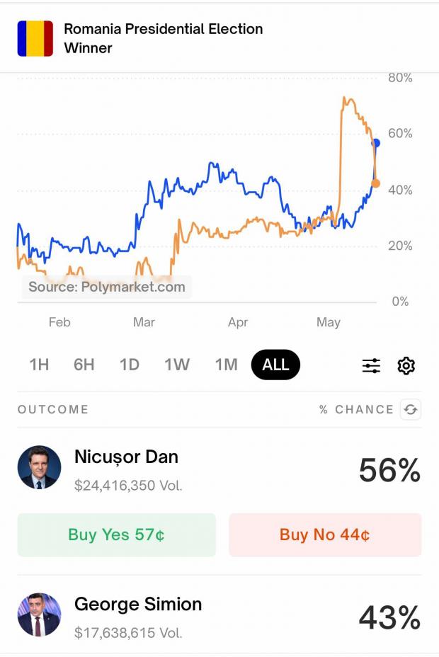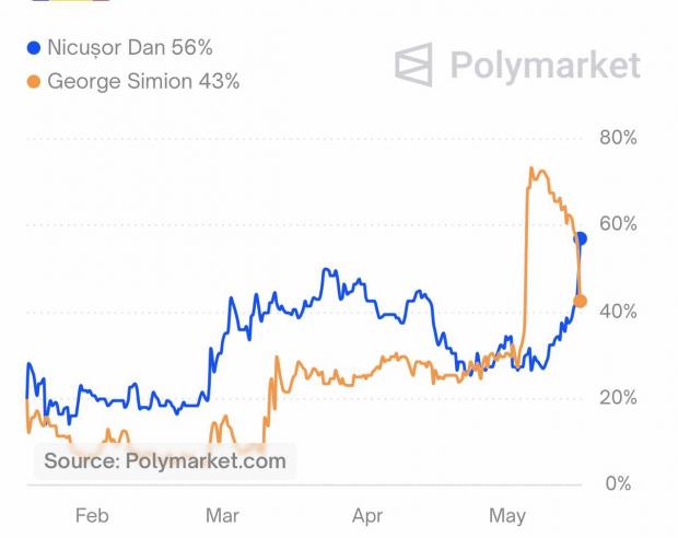 Anterior, dezvăluiri despre o schemă pentru a-l umfla artificial pe candidatul extremist pe platforma Polymarket au dus la o cădere dramatică a cotei acestuia. Conturi false au investit miliarde de dolari pentru a da impresia că victoria lui Simion e asigurată. Miza? Demobilizarea adversarilor și influențarea alegătorilor nehotărâți.