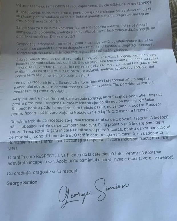 În noile scrisori, George Simion își exprimă „respectul pentru truda de zi cu zi” a oamenilor de la sate și face apel la identitatea națională.