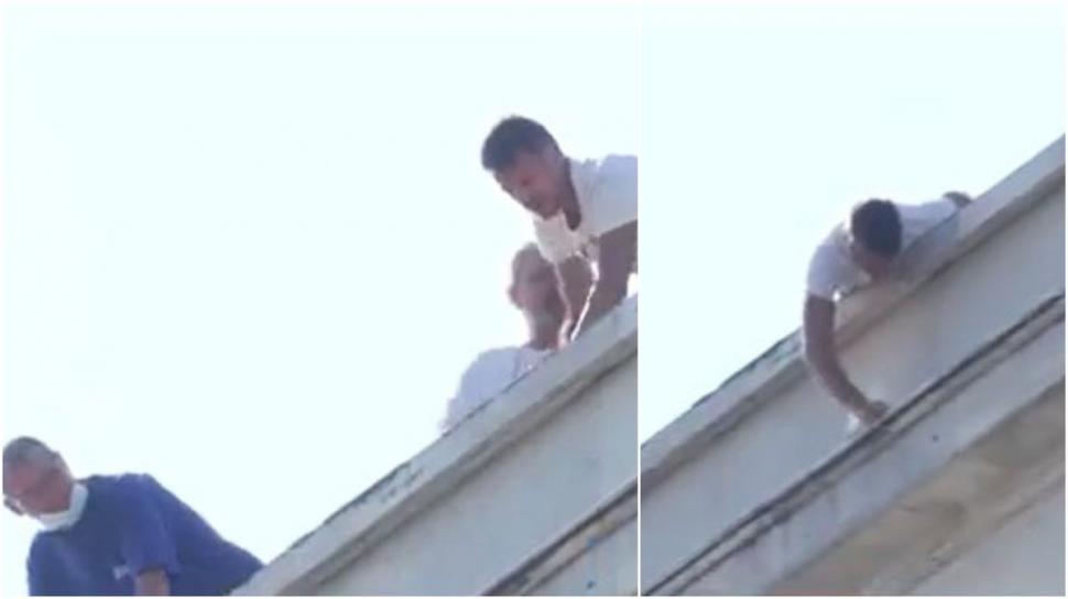 Oamenii au fost surprinși cum lucrau de zor pe acoperișul clădirii cu doar câteva ore înainte ca președintele României să ajungă acolo.