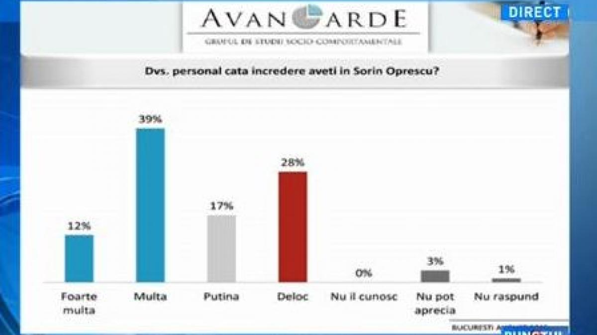 Radu Tudor a prezentat un sondaj pus la dispoziţie de Avangarde, cu personajele principale politice din România, pentru a vedea mai bine care este era situaţia lui Sorin Oprescu până la momentul reţinerii sale.