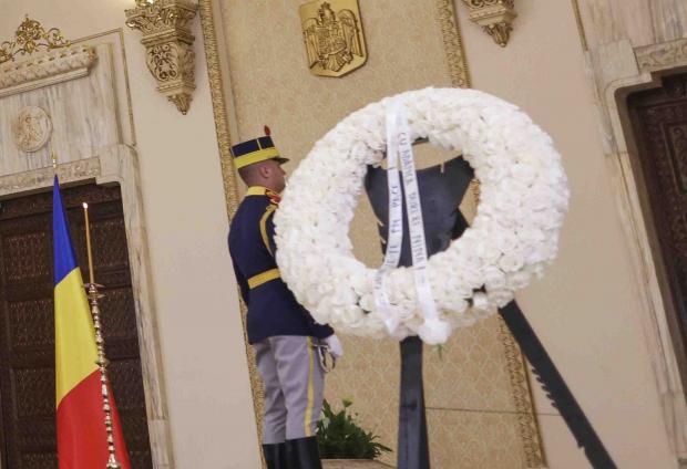 Soția fostului președinte Ion Iliescu, Nina Iliescu, a depus lângă sicriul așezat la Palatul Cotroceni o coroană de flori cu un mesaj pentru soțul ei: „Odihnește-te în pace! Cu adâncă durere, Nina”.
