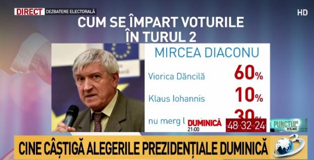 60% dintre cei care l-au votat pe Mircea Diaconu, care a obținut peste 800.000 de voturi, votează în turul 2 cu Viorica Dăncilă.