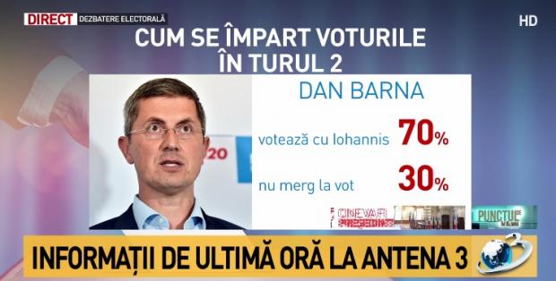 Astfel, potrivit evaluărilor, 70% dintre cei care au votat cu Dan Barna, votează cu Klaus Iohannis.
