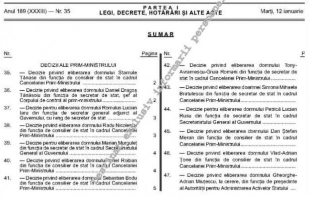 Cea mai cunoscută plecare din guvern, la cererea premierului interimar, este cea a lui Antonel Tănase, secretarul general al Executivului.