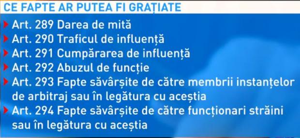 Lista faptelor care ar putea fi grațiate, dacă trece proiectul de lege: