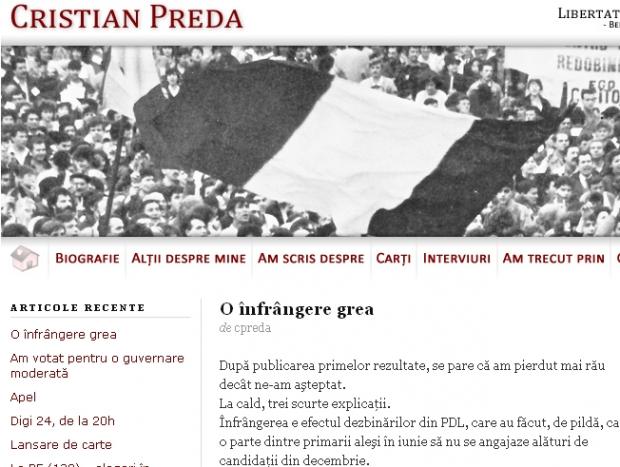 "După publicarea primelor rezultate, se pare că am pierdut mai rău decât ne-am aşteptat", scrie Cristian Preda, luni, pe blogul său.