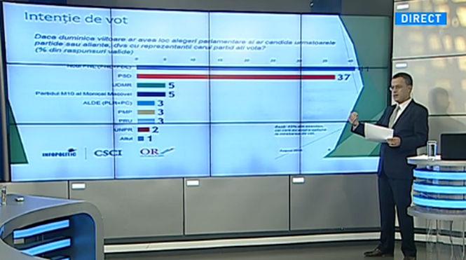 Un sondaj arată cum ar vota românii dacă duminica viitoare ar avea loc alegeri parlamentare.41% dintre români ar vota noul PNL, iar 37% ar vota PSD. UDMR şi M10 ar fi votate de 5% dintre români, iar ALDE, PMP şi PRU ar câştiga, fiecare, câte 3% din voturile românilor. UNPR ar fi votat de 2% dintre români.