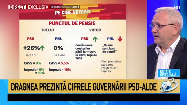 - Noi am eliminat CASS la toate pensiile, pensiile sub 2.000 au impozit zero, cele peste 2.000, impozit 16% și 10%.