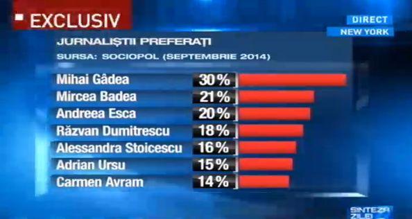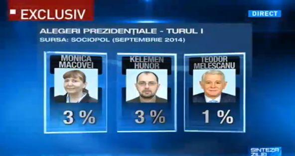 Cei trei realizatori Antena 3 au prezentat şi comentat un sondaj de opinie care arată opţiunile românilor cu privire la alegerile prezidenţiale. Sondajul a fost realizat de Sociopol.