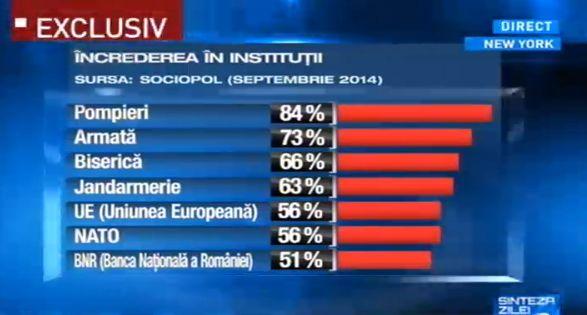 Sondajul Sociopol a fost realizat între 20 şi 23 septembrie anul acesta, pe un eşantion reprezentativ de 1008 persoane şi are o marjă de eroare de 3,2 la sută.