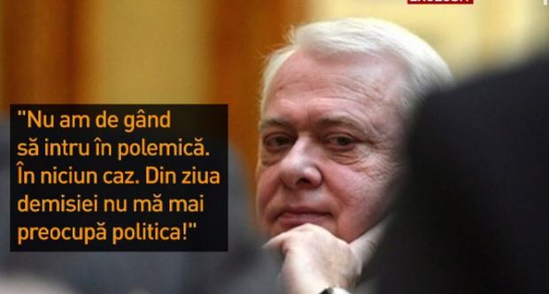 „Nu am de gând să intru în polemică. În niciun caz. Din ziua demisiei nu mă mai preocupă politica!”, a precizat Viorel Hrebenciuc în exclusivitate pentru emisiunea „Punctul de întâlnire” de la Antena 3.