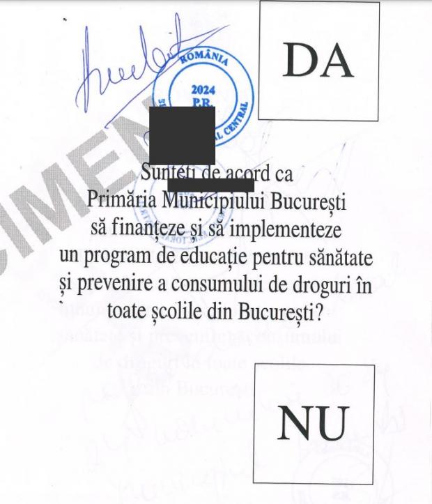 - Al treilea buletin de vot se referă la finanţarea şi implementarea unui program de educaţie pentru sănătate şi prevenirea consumului de droguri în toate şcolile din Bucureşti. Întrebarea aferentă este: „Sunteţi de acord ca Primăria Municipiului Bucureşti să finanţeze şi să implementeze un program de educaţie pentru sănătate şi prevenire a consumului de droguri în toate şcolile din Bucureşti?”