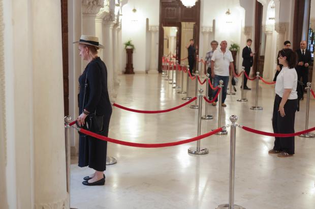 06 AugCeremonia de prezentare a condoleanțelor de către înalții oficiali, dar şi semnarea în Cartea de Condoleanțe, amplasată în Salonul Florilor, se va închia la ora 12:30.