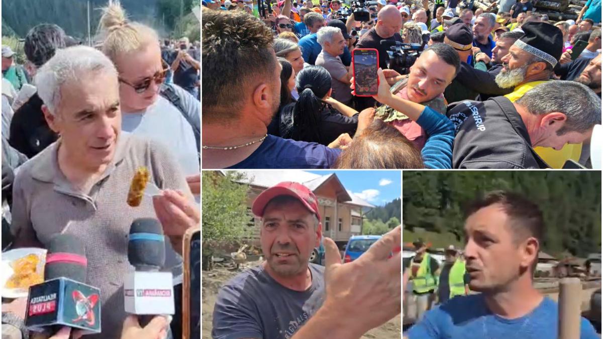 Plimbarea de 4 ore şi jumătate făcută de Călin Georgescu, vineri, prin Broşteni, însoţit de bodyguarzi şi de fanii cu căciuli de daci aduşi de la Bucureşti a provocat furie în rândul localnicilor şi al voluntarilor care muncesc de o săptămână să repare casele şi drumurile distruse de inundaţii.
