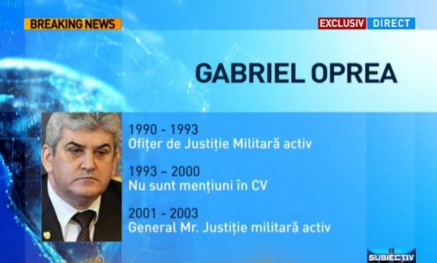 Gabriel Oprea a devenit colonel în anul 2001. Gabriel Oprea a devenit general tot în anul 2001, după cum a explicat Oana Zamfir, în emisiunea Subiectiv.