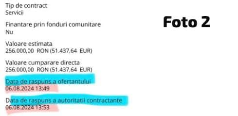 Firma trimite oferta pe 6 august la ora 13:49, iar primăria este de acord cu toate aspectele propuse (tehnice, financiare, de implementare etc.) după doar patru minute! (foto 2) Credeți cumva că au fost înțeleși sau aveau întâmplător ferestrele deschise și degetul pe tasta Enter?