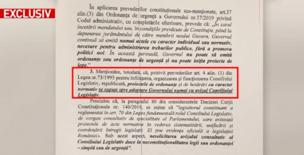 „Am trimis noi punct cu punct toate cele 25 de ordonanțe și astăzi am primit răspunsul pe fiecare în parte. Din acea listă de 25 de ordonanțe de urgență aprobate marți noapte, înainte ca moțiunea să fie votată în Parlament, patru au fost trimise înainte de ședința de Guvern.