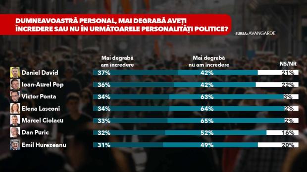Topul este urmat de Emil Boc, despre care 42% au spus că au încredere.