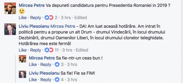 „Am luat aceasta hotarare. Am intrat in politica pentru a propune un alt Drum – drumul Vindecarii, in locul drumului Dezbinarii, drumul Oamenilor Liberi, in locul drumului clonelor teleghidate. Hotararea mea este ferma!”, a scris deputatul.