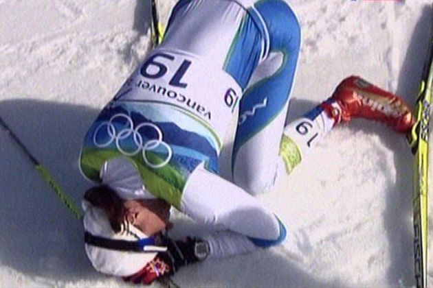 Petra Majdic tocmai câştigase medalia de bronz în proba de sprint din cadrul concursului feminin de schi fond. Nimic anormal până aici, însă cu câteva ore înainte de această finală, la încălzirea premergătoare calificărilor, sportiva din Slovenia căzuse de la doi-trei metri într-o râpă şi se lovise destul de serios la coaste. S-a ridicat, a tras aer în piept şi s-a calificat de pe locul 19 din 30 în sferturile de finală, însă durerea o copleşise şi aproape că a leşinat. A fost dusă de urgenţă la un spital, unde i s-a făcut o radiografie. S-a întors apoi la Parcul Olimpic în timp util pentru sferturi, cu avizul doctorilor în dinţi, fără coaste rupte şi cu o voinţă inumană, mai puternică decât orice analgezic, de a finaliza cursa.