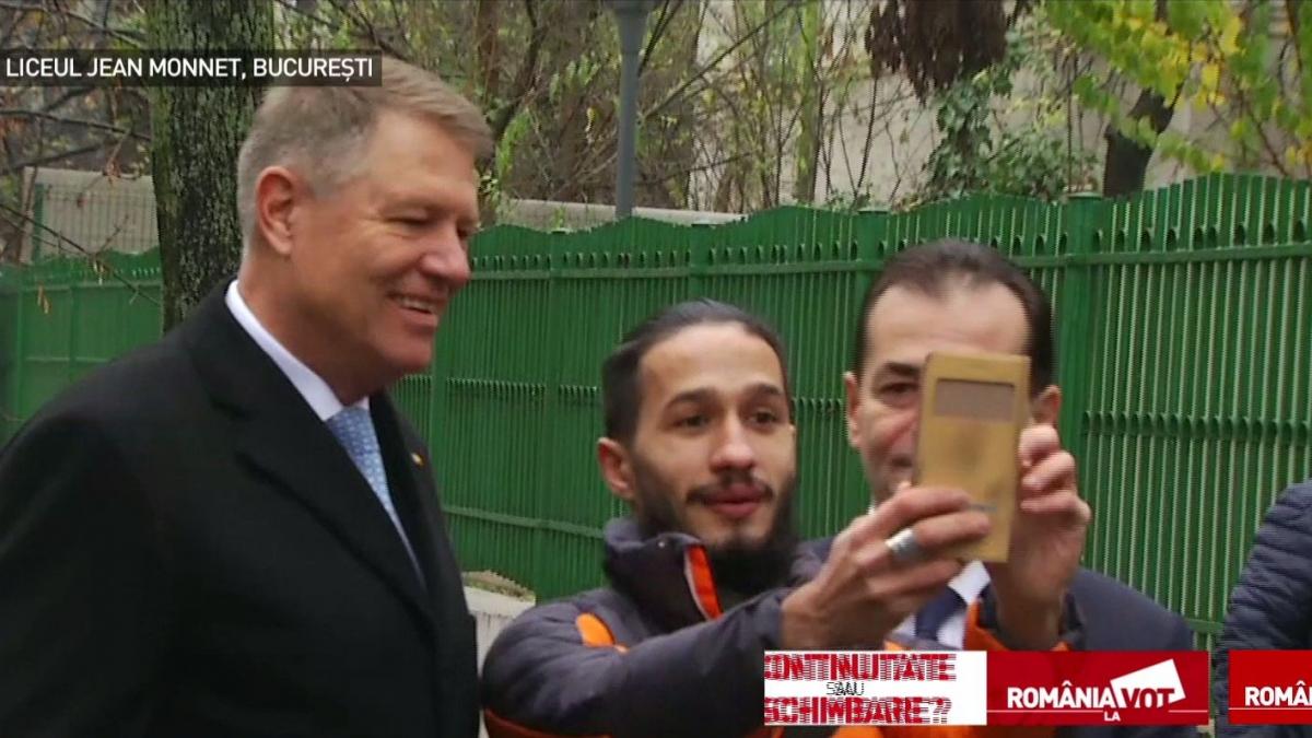 Iohannis a fost așteptat de premierul Ludovic Orban, mai mulți lideri liberali, dar și de câțiva susținători. Unul dintre ei chiar le-a cerut celor doi lideri politici să facă un selfie în fața secției de votare.