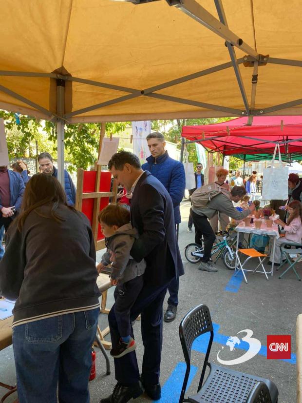 Nicușor Dan s-a dus cu copiii pe Calea Victoriei să facă păpuși de hârtie. FOTO Antena 3 CNN Andreea Dumitrache