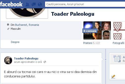 "E absurd ca tocmai cei care n-au nici o vină să-şi dea demisia din conducerea partidului", scrie Paleologu, vineri, pe Facebook.