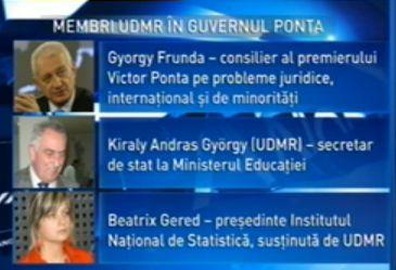 Kiraly Andras Gyorgy ocupă funcţia de secretar de stat în Ministerul Educaţiei, în timp ce Beatrix Gered, până acum vicepreşedinte al INS, a fost numită preşedinte interinar al Institutului Naţional de Statistică, după demiterea lui Vergil Voineagu.