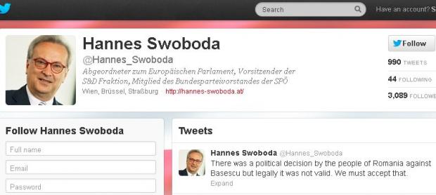 "A fost o decizie politică a cetăţenilor din România împotriva lui Băsescu, dar din punct de vedere legal nu a fost validată. Trebuie să acceptăm acest lucru", afirmă liderul grupului S&D din PE, într-o postare pe Twitter, la mai puţin de o jumătate de oră de la anunţul oficial al Curţii Constituţionale privind referendumul.