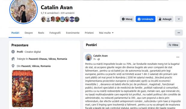 Cătălin Avan este edilul comunei Păușești Otăsău din județul Vâlcea. Este la al treilea mandat, pe care l-a câștigat candidând în numele PSD, însă pozițiile exprimate public par să-l apropie mai mult de AUR.