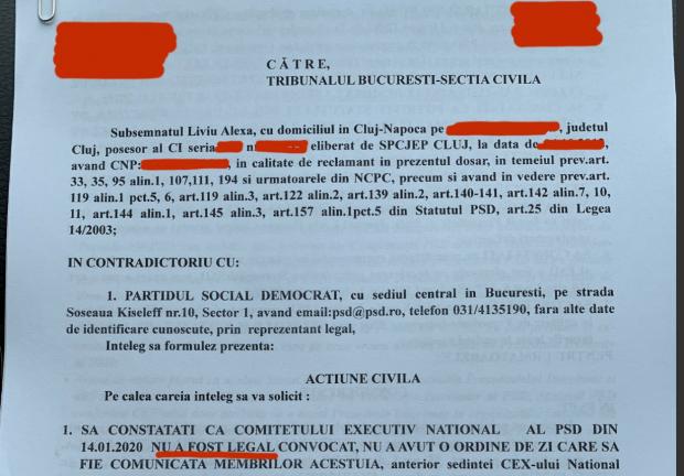 De asemenea, Alexa mai cere Tribunalului Bucureşti să constate că toate CEX-urile Naţionale ale PSD convocate de Marcel Ciolacu sunt nelegale şi nestatutare, la fel şi hotărârile luate în cadrul acestora.