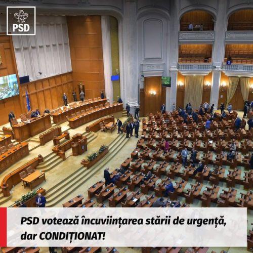 Inexistența testării masive a populației, lipsa transparenței informărilor și achizițiilor publice, lipsa măsurilor concrete pentru salvarea locurilor de muncă și pentru relansarea economiei, lipsa măsurilor concrete de sprijin a populației în aceste momente și lipsa măsurilor pentru agricultura românească sunt motivele pentru care #PSD a decis să voteze încuviințarea stării de urgență, dar #CONDIȚIONAT!