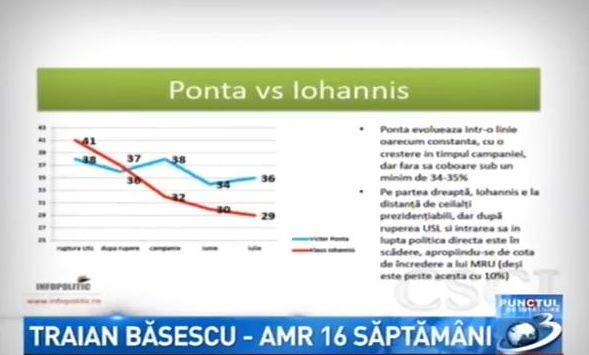 Aceeaşi sinteză relevă faptul că cei doi candidaţi majori, Victor Ponta şi Klaus Iohannis pierd din popularitate, dar în timp ce Ponta pierde două procente, Iohannis pierde 12 procente.