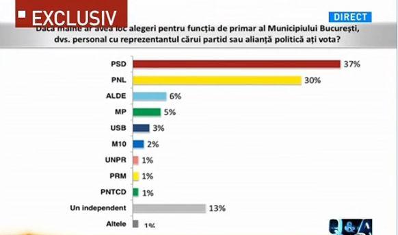Astfel, conform sursei citate, la întrebarea “Dacă mâine ar avea loc alegeri pentru funcția de primar al Municipiului București, dvs personal cu reprezentantul cărui partid sau alianță politică ați vota?”