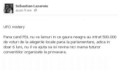 Într-o postare apărută pe contul său de Facebook, şi intitulată UFO mistery, Lăzăroiu spune: