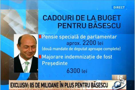Fostul preşedinte Traian Băsescu se va bucura de o mărire a lefei, după ce fostul premier interimar Gabriel Oprea a promulgat o ordonanţă privind mărirea indemnizaţiiilor pentru demnitari. Mai exact, Băsescu va încasa peste 16.000 de lei lunar.