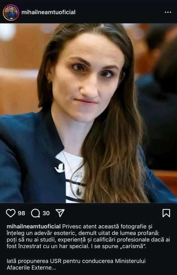 Iată propunerea USR pentru conducerea Ministerului Afacerilor Externe...”, a scris parlamentarul AUR în descriere.