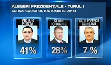 53% dintre cei întrebaţi au spus că Victor Ponta va câştiga alegerile prezidenţiale, 13% sunt de părere că Iohannis va câştiga, 3% cred în Călin Popescu Tăriceanu şi 1% Elena Udrea.