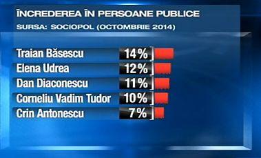 La capitolul încredere în persoanele publice, pe primul loc se află Raed Arafat. Guvernatorul BNR ocupă locul doi, iar premierul Victor Ponta este pe trei.