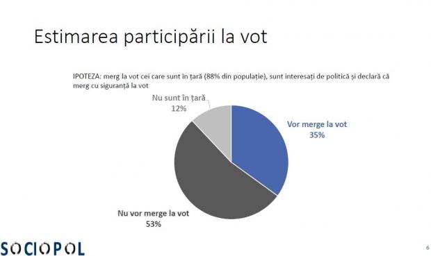 Îngrijorător este, însă, procentul de oameni care nu au inteţia să meargă la vot. Mai exact, 53% dintre respondenţi au răspuns că nu vor merge la vot, în timp ce doar 35% vor să meargă la vot.