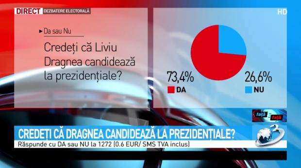 Telespectatorii Antena 3 au votat astfel: 73,4% au răspuns DA și 26,6% au răspuns NU.