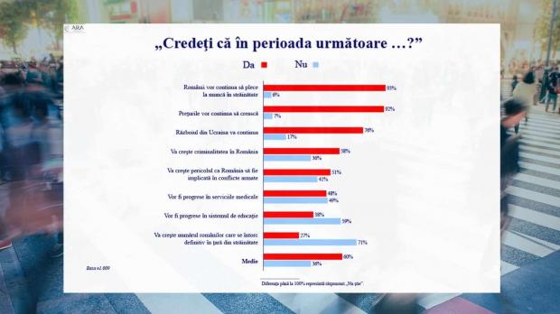 De asemenea, respondenții cred că în următoarea perioadă românii vor continua să plece la muncă în străinătate și că prețurile vor continua să crească.