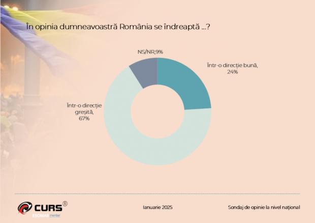 În ciuda interesului pentru procesul democratic, majoritatea românilor cred că țara se îndreaptă într-o direcție greșită. De altfel, potrivit datelor Eurobarometrului 101 din 2024, românii sunt cei mai nemulțumiți dintre europeni cu privire la viețile lor și cred că o să le fie tot mai greu în 2025.