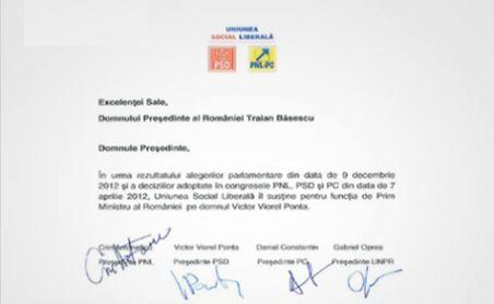 Înaintea consultărilor cu şeful statului, liderii USL au avut o întâlnire. Din partea USL, la discuţii au participat Victor Ponta (PSD), Eduard Hellvig (PNL), Daniel Constantin (PC) şi Gabriel Oprea (UNPR). Liderul PNL Crin Antonescu a refuzat să participe la consultări, deşi, aşa cum a declarat, săptămâna trecută a participat, alături de Victor Ponta, la o întâlnire informală la Cotroceni, cu preşedintele Băsescu.