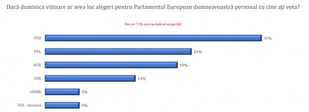 Potrivit sondajului, 71% dintre respondenţi au indicat un partid atunci când au fost întrebaţi: "Dacă duminica viitoare ar avea loc alegeri pentru Parlamentul European dumneavoastră personal cu cine aţi vota?"