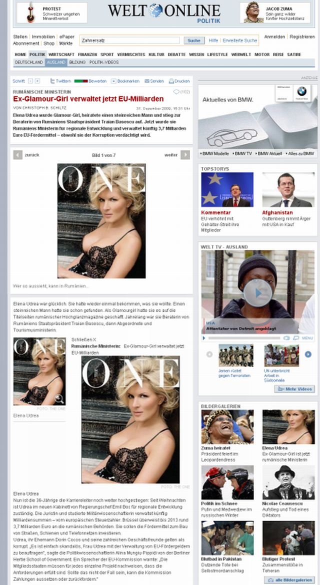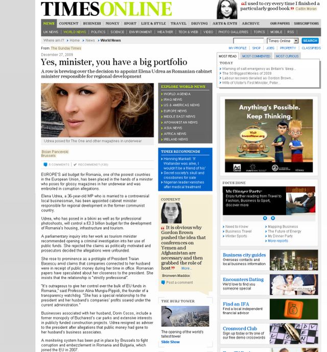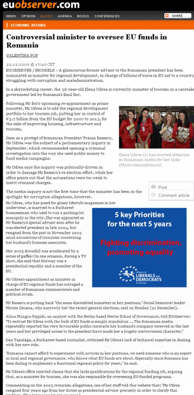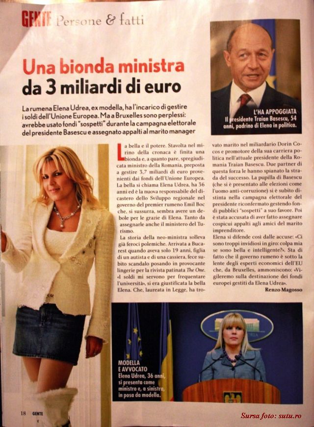 Articolul vine să întregească lista publicaţiilor străine care au scris despre Elena Udrea. Printre acestea se numără The Sunday Times, Die Welt, EU Observer şi revista italiană Gente.