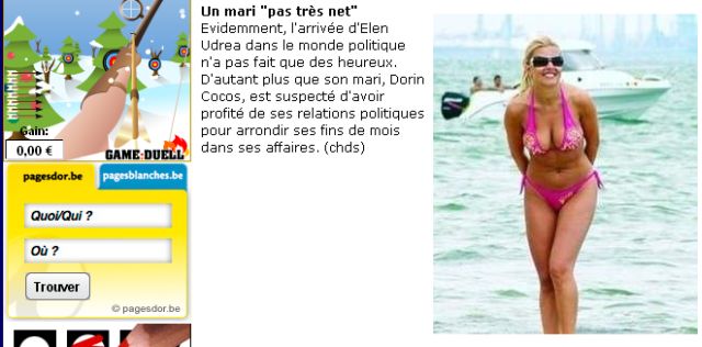 Despre Dorin Cocoş - "un soţ nu foarte curat" - jurnaliştii belgieni spun că "este suspectat că s-ar fi folosit de relaţiile politice pentru a-şi spori afacerile", astfel că "în mod evident, intrarea în politică a Elenei Udrea nu a bucurat pe toată lumea".