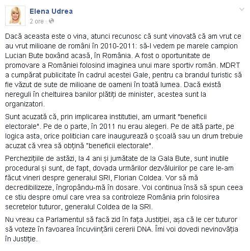 "Percheziţiile de astăzi, la 4 ani şi jumătate de la Gala Bute, sunt inutile procedural şi sunt, de fapt, dovada urmărilor dezvăluirilor pe care le-am făcut vineri despre generalul SRI, Florian Coldea. Vor să mă decredibilizeze, îngropându-mă în dosare. Voi continua însă să spun ceea ce stiu despre omul care vrea sa controleze România prin folosirea secretelor tuturor, generalul Coldea de la SRI.